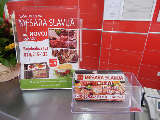 Mesom se snadbevamo sa prostora Kolubarskog i Mačvanskog okruga, uvek je sveže i bakteriološki ispravno. Cilj nam je da pružimo kvalitet i što efikasniju uslugu kako bi naši potrošači bili zadovoljni.